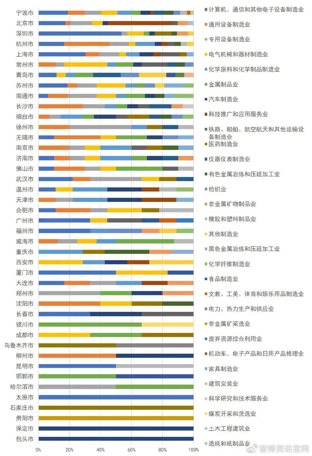 第二種是具有一兩個(gè)主導(dǎo)領(lǐng)域的城市,例如深圳市、上海市、常州市、徐州市、無(wú)錫市、佛山市、武漢市、廣州市等城市,主導(dǎo)制造業(yè)優(yōu)勢(shì)明顯,絕大多數(shù)城市都屬于這樣的類(lèi)型;