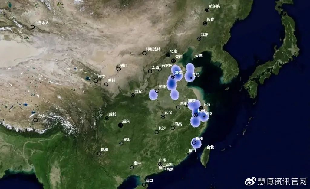 長(zhǎng)三角是面積最廣的一塊熱點(diǎn)區(qū)域,上海及蘇南、浙北是我國(guó)制造業(yè)的傳統(tǒng)優(yōu)勢(shì)地區(qū)。另一個(gè)面積較廣的熱點(diǎn)區(qū)域出現(xiàn)在濟(jì)南、青島周邊,但煙臺(tái)、威海尚未與之完全連綿,山東的制造業(yè)實(shí)力確實(shí)強(qiáng)大。