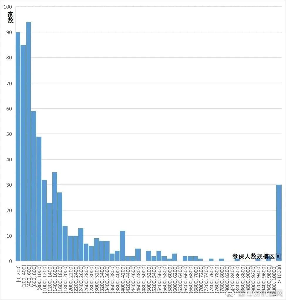 根據(jù)本團(tuán)隊(duì)收集整理的單項(xiàng)冠軍企業(yè)(包含示范企業(yè)、培育企業(yè)及冠軍產(chǎn)品所在企業(yè))參保人數(shù)數(shù)據(jù)——