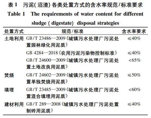 德國污泥沼渣出路中,64%采用干化后焚燒,24%農用,12%用作景觀園林覆土。歐洲其他國家如荷蘭、瑞士已實現污泥沼渣100%焚燒。污泥焚燒后的灰渣磷含量高[(93.1±3.2)g/kg],是污泥沼渣磷含量的3倍(圖2),有利于后續的磷資源回收。磷是不可再生的自然資源,因此,德國2017年通過了對《污水污泥條例》(The German Sewage Sludge Ordinance, Abfallklarschlammverordnung, AbfKlarV)的修訂,要求從污水污泥或其焚燒灰中回收磷,明確提出2029年后含磷量大于20g/kg總固體的污水污泥須采用磷回收工藝,要求從污水污泥總固體中回收50%以上的磷;而污泥沼渣平均磷含量高達35.7g/kg(圖2),適用于“污泥沼渣焚燒-磷回收”的技術路線。盡管我國污泥厭氧消化處理量逐年激增,近10年從2814t/d增至6944t/d,但目前普及率僅為3%,遠低于領先國家50%的水平。據不完全統計,我國污泥沼渣利用途徑中,29%為堆肥土地利用、27%為焚燒、20%為填埋、16%為建材利用、8%進行其他處理,F階段,為滿足國家標準與規范(表1),大部分污水廠添加大量藥劑(如CaO,10%~15%,質量分數)進行“污泥調質-板框壓濾”,以降低沼渣含水率到60%~65%后直接填埋。但大量藥劑的添加不僅增加了污泥量和運行費用,而且不利于資源化利用。若采用干化技術,可將污泥沼渣含水率由80%降至40%,體積可減少3倍,而熱值可提高約2.5倍,將極大地降低運輸成本,并為后續的焚燒或資源化處置提供基礎。干化+焚燒有望成為最有效的污泥(沼渣)處置技術工藝之一。