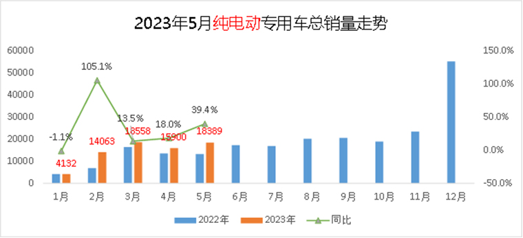 5月份專用汽車企業(yè)共計銷售新能源專用汽車18846輛,其中純電動18389輛,同比增長39.4%,環(huán)比增長15.7%,保持增長態(tài)勢。