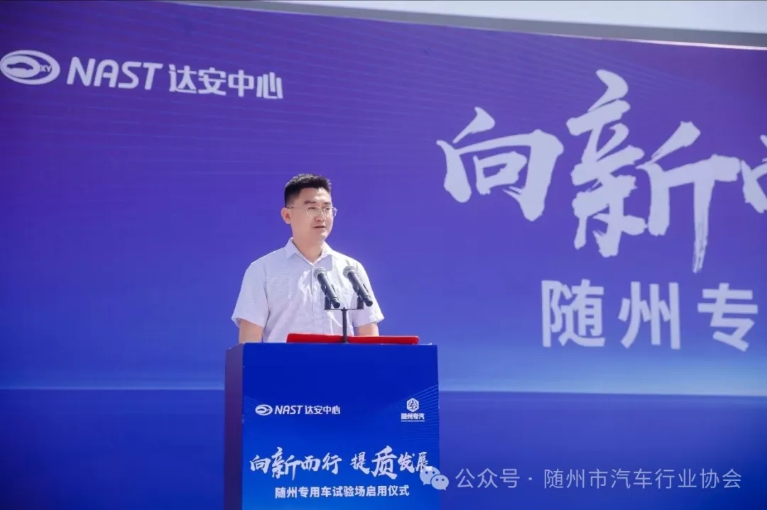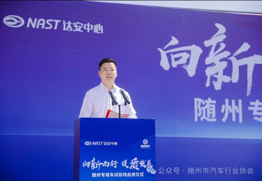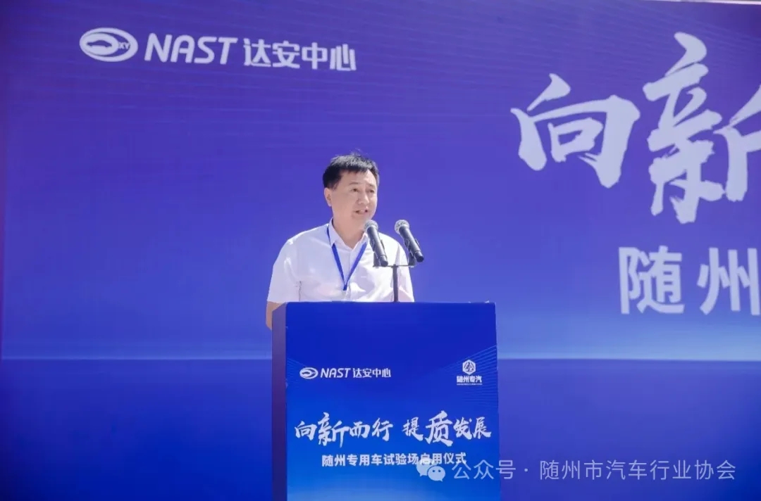 王靳在致辭時說,達安中心與隨州市曾都區政府攜手打造的“隨州專用汽車試驗場”,是華中地區首個專用汽車測試場,優質的試驗資源賦能一流的產業體系,必將為隨州乃至全國專汽轉型升級與高質量發展提供強大動能,助力隨州乃至全國的合作伙伴向更高處邁進。